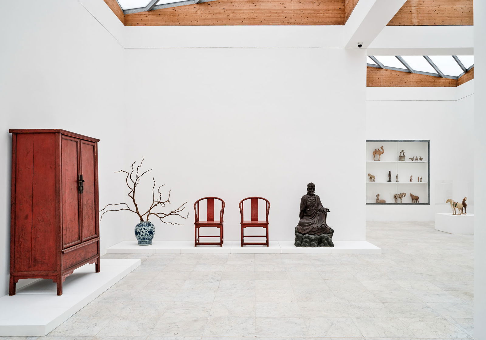 Denn sie ist durchaus anspruchsvoll: Skulpturen aus der Khmer-Zeit treffen auf Arbeiten von Hans Arp, Yves Klein, Lovis Corinth oder Francis Picabia. Antike Artefakte stehen gleichberechtigt neben zeitgenössischer Malerei, ostasiatische Figuren und afrikanische Masken korrespondieren mit europäischen Stillleben.