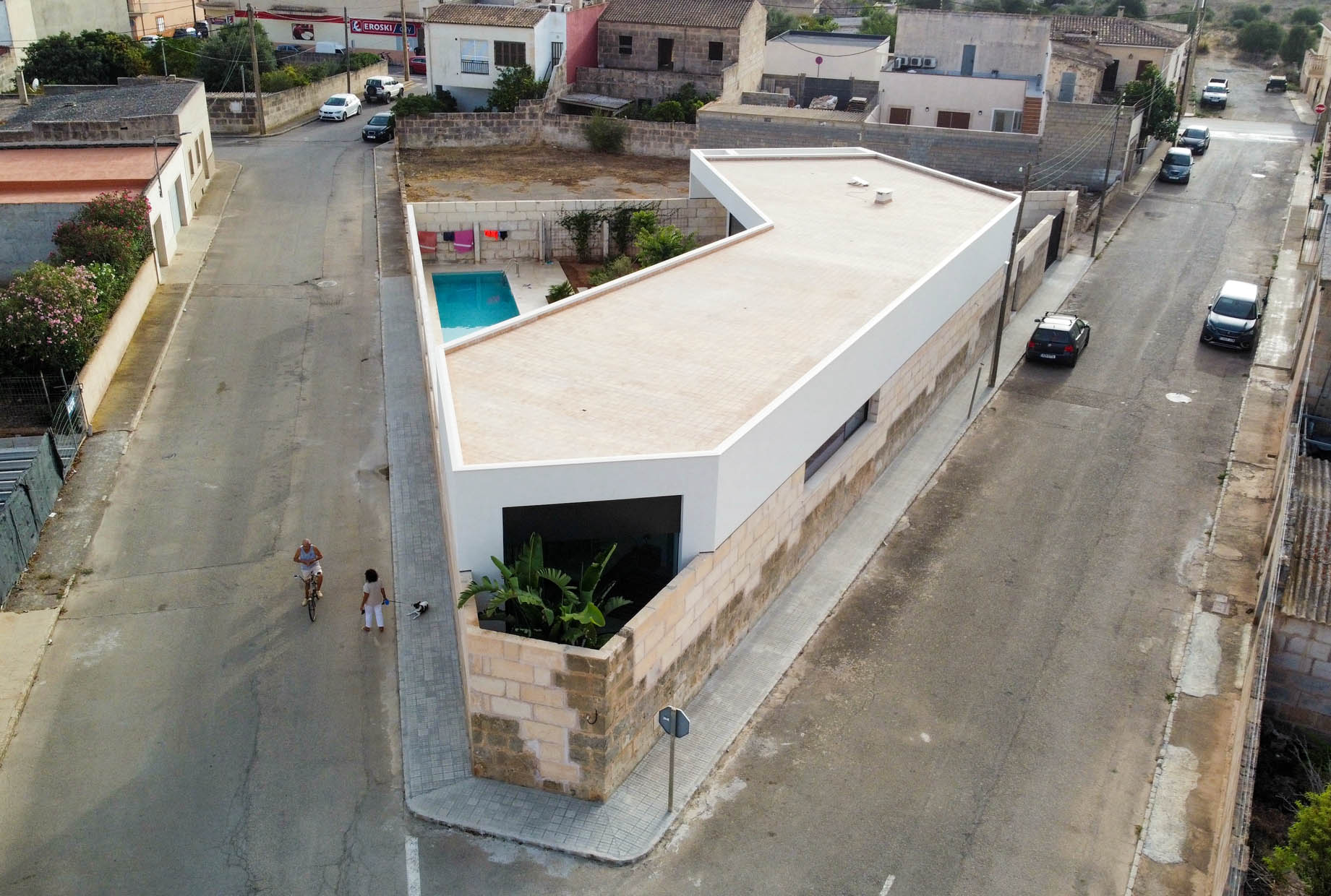 Mallorca is considered a microcosm of contrasts, and Casa Esperança is among the island’s hidden retreats. Its location alone makes it special: in the heart of Ses Salines, yet secluded by a wall of local Marès sandstone. The old stone walls of the triangular property served as the starting point for the project, which was realised by the Madrid-based firm ABM Arquitectos and Kinzo Architekten from Berlin. The design completes the rudimentary wall to form a patio, into which the angled bungalow fits like a boomerang, creating different open spaces.