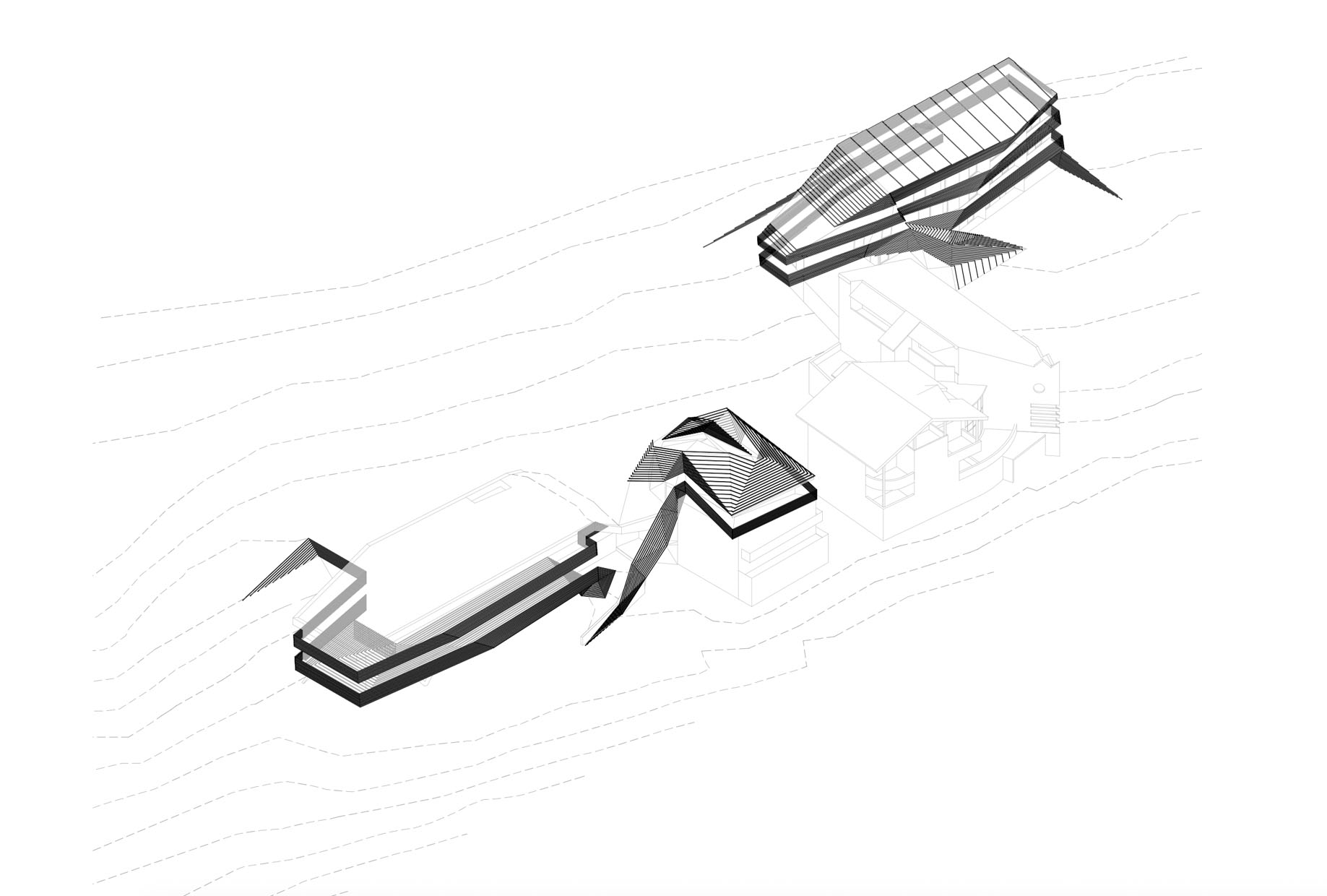 Alongside this, ultra-modern buildings have since been added on the opposite side of the road, with an entirely different architectural language. How did you arrive at this intriguing formal expression?