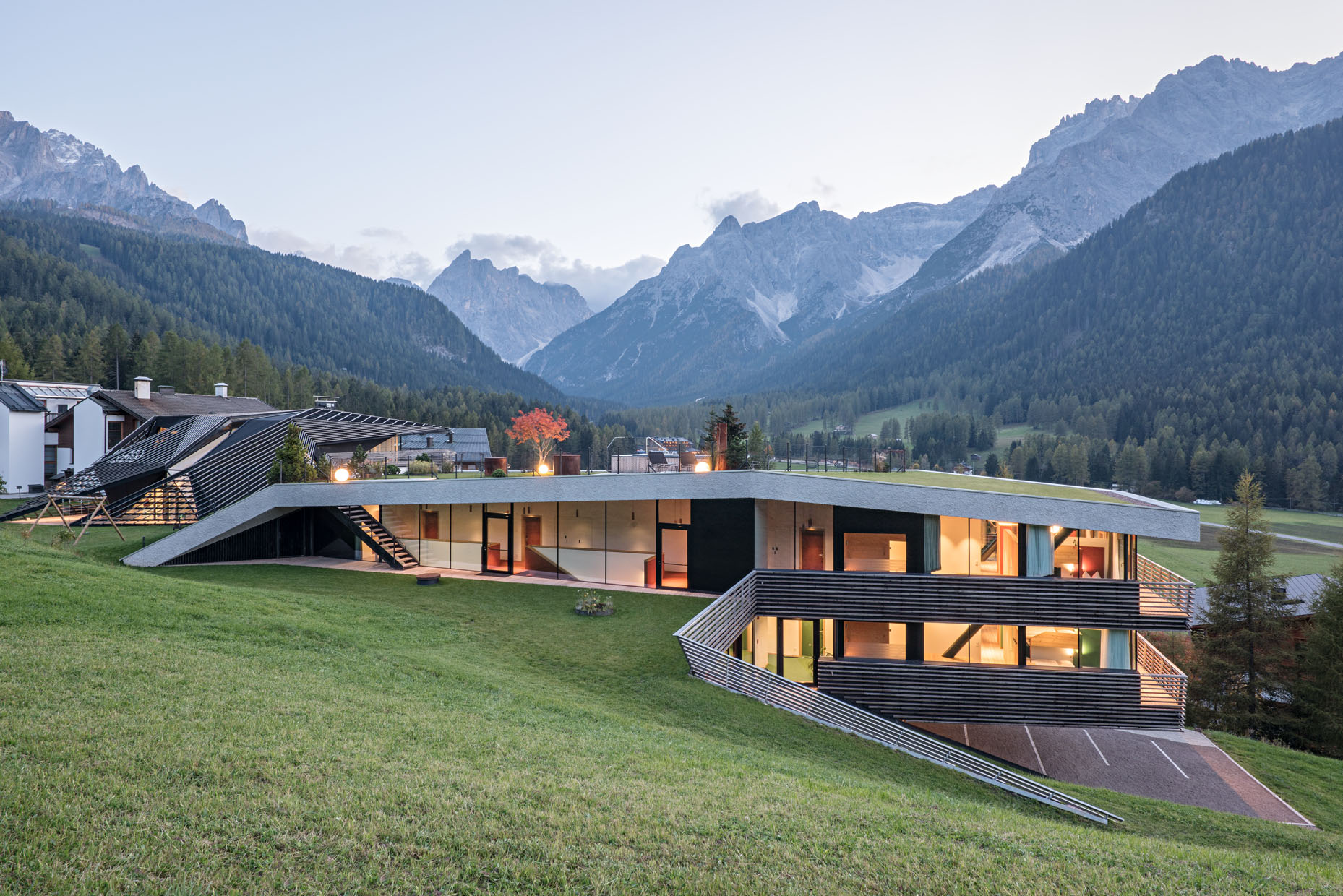 In the end, the decisive factor was once again the landscape. By removing the roofs of the extensions, we were able to introduce a new landscape roof and calm the rather congested overall setting – with the neighbouring self-service restaurant of the lift facilities, a playground full of attractions, and the ski slopes. Those setting out from here towards the Carnic High Route will now find a quiet spot on the far side, with views towards the Veneto and the Sexten Sundial.